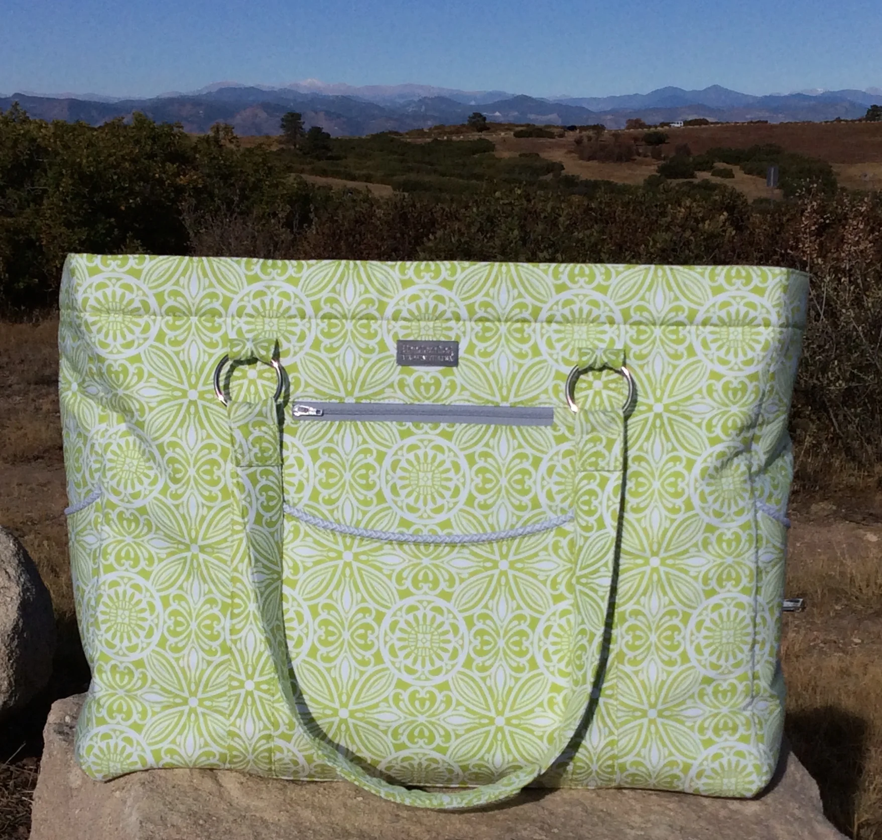 I think those mountains behind this Megan Travel Tote are calling! I think they are calling me! This pattern was a huge undertaking, so I might just have to pack up for a weekend getaway! ;)